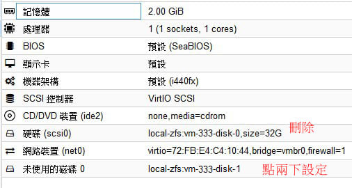 跑完后,会在 /etc/pve/qemu-server/333.conf 加入一行该新增的硬盘: